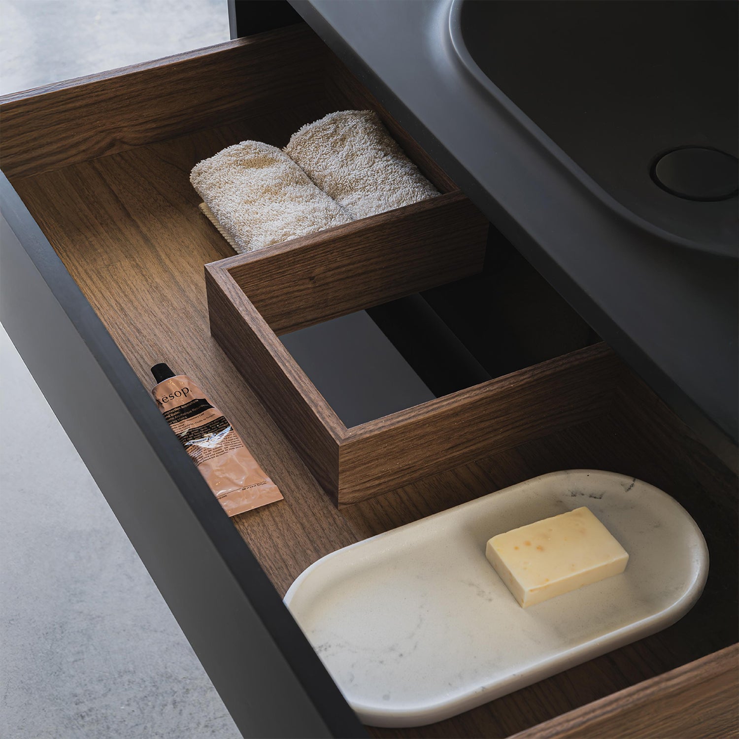 Lavamanos sobre encimera, antracita Incluye agujero para el grifo. Mueble de 120 cm